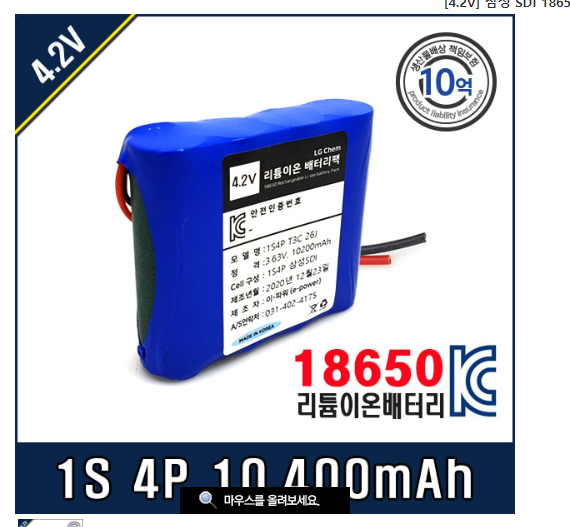 기존 알리발 양수기를 분해해 보니 3.7V 2000mAh 리튬이온 1개가 부착되어 있었습니다. 이 배터리로 2시간 구동이 가능하다고 하니 4개가 있으면 8시간 가능할 걸로 예상이 되어서 1S4P 3.7V 10400mAh 리튬이온배터리를 구입하였습니다.